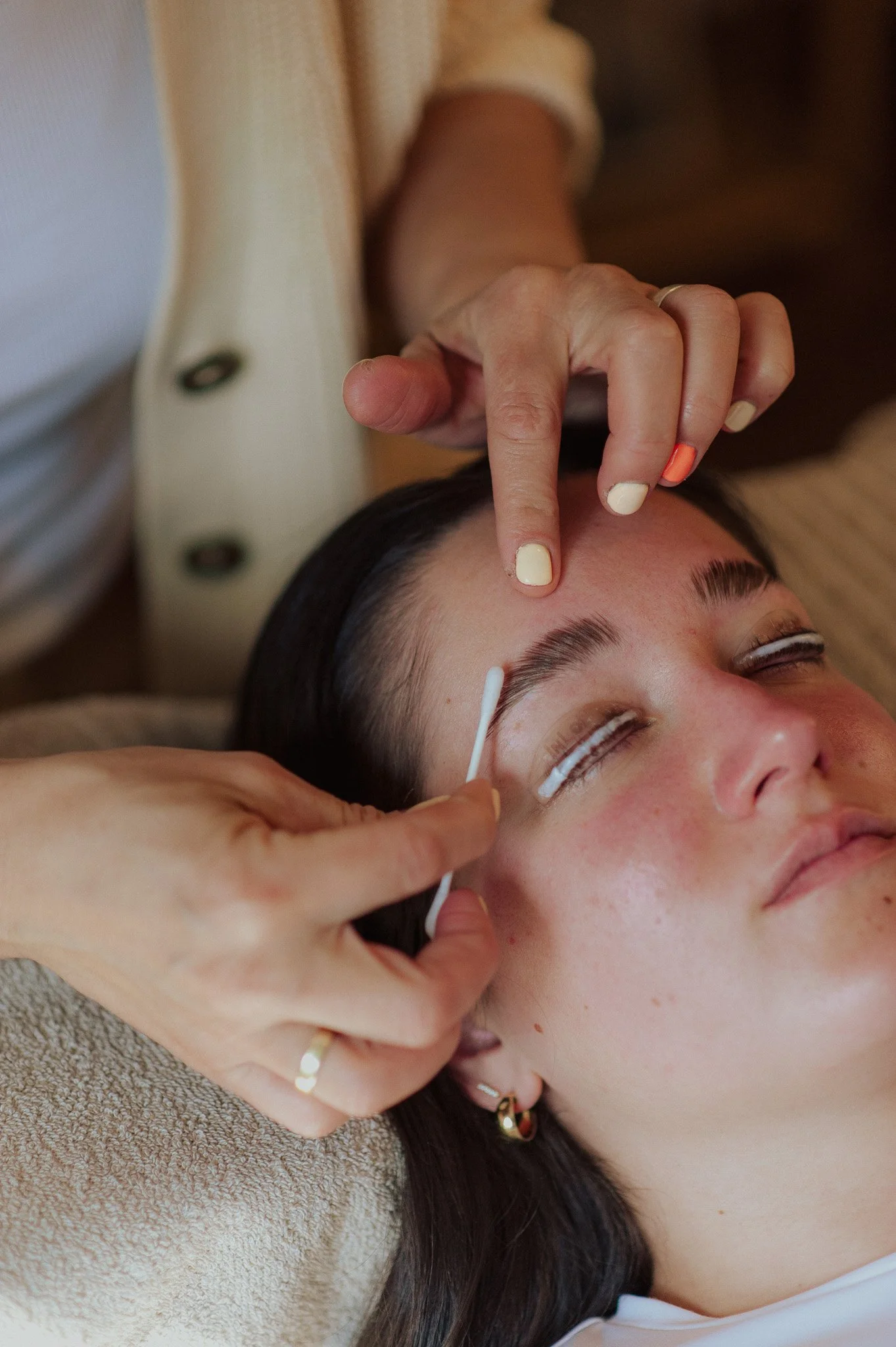 Durch die chemische Lösung legen wir deine Brauen in eine neue Form, fixieren und färben sie.